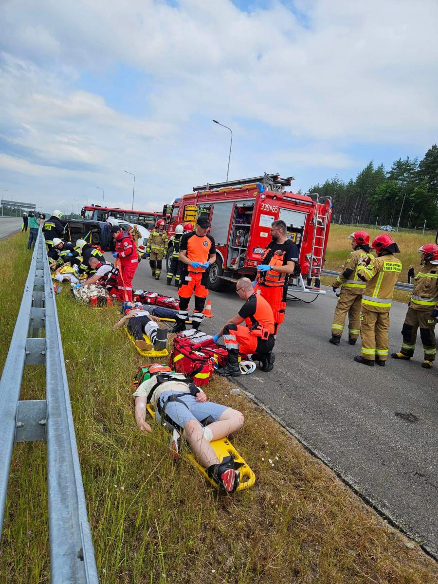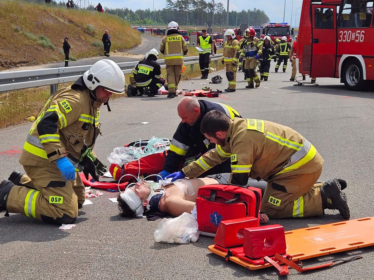 Scenariusz ćwiczeń zakładał masowy wypadek z udziałem autobusu oraz samochodów osobowych.