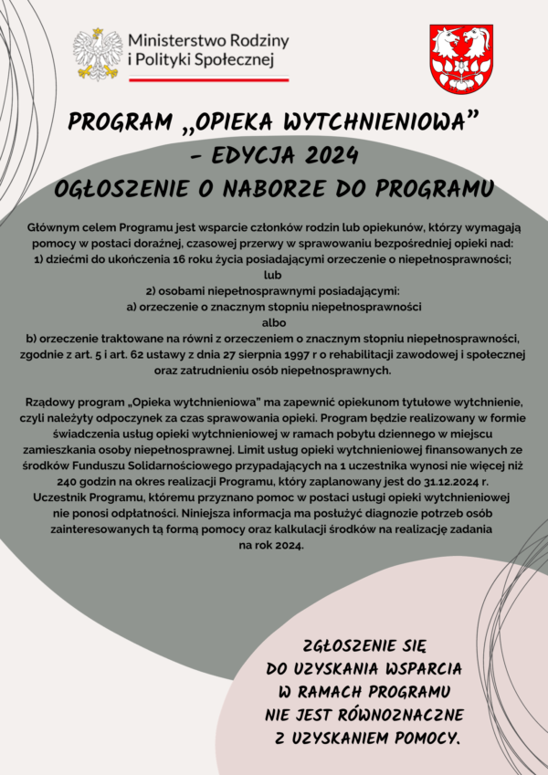 Ogłoszenie o naborze do Programu „Opieka wytchnieniowa” – edycja 2024