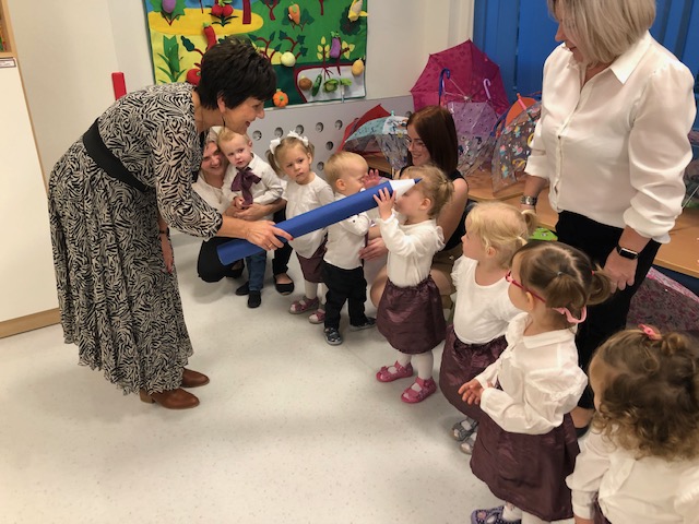 Po części artystycznej nastąpiło uroczyste pasowanie na Starszaka, którego dokonały Wójt Gminy Świeszyno Pani Ewa Korczak i Dyrektor Żłobka Pani Agnieszka Pieprzka.