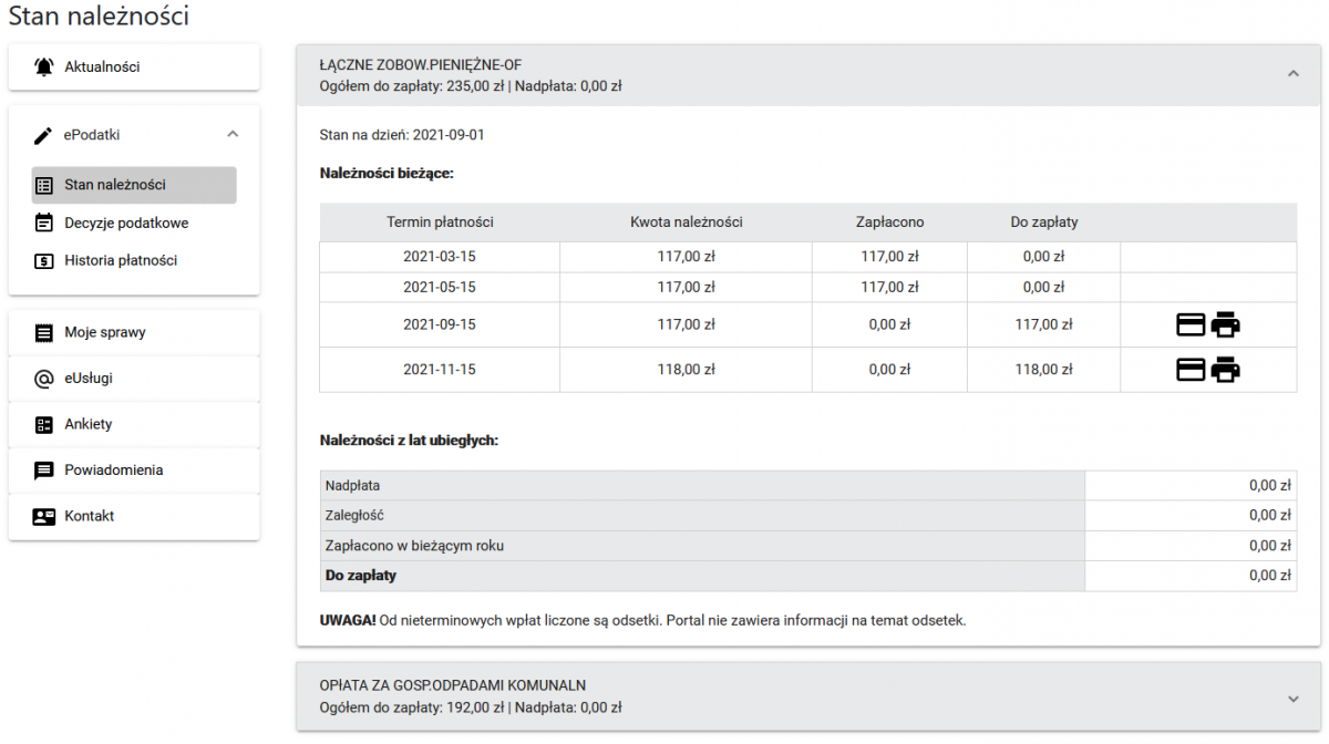 Zalogowany użytkownik portalu będzie miał wgląd w bieżący stan należności, wysokość rat, historię wpłat a także możliwość dokonania płatności bezpośrednio z poziomu portalu.