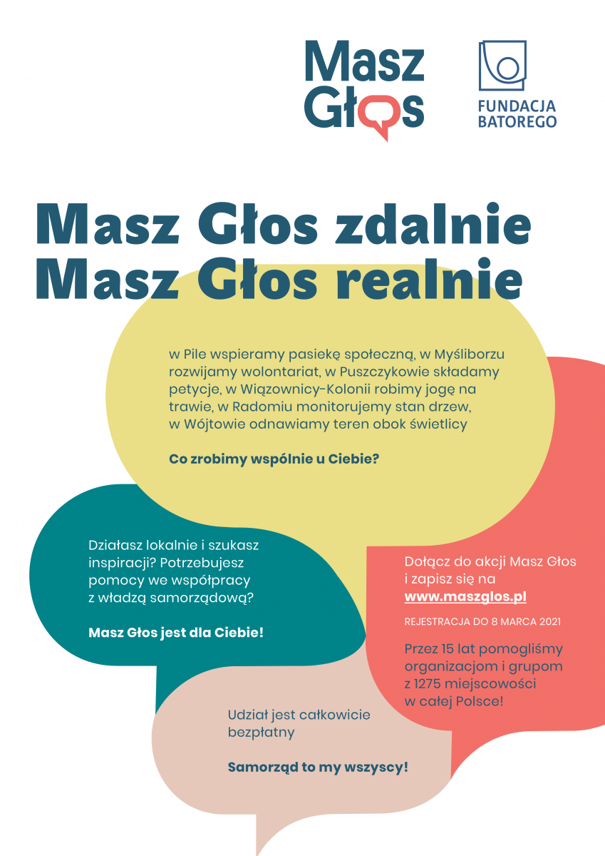 W czasie pandemii ważna jest współpraca różnych środowisk, które na co dzień pracują i funkcjonują na jednym terenie. Razem łatwiej jest zadbać o edukację online, monitoring stanu drzew w gminie czy dobry projekt do budżetu obywatelskiego. Wszystkich gotowych do takiego zaangażowania wspiera program Fundacji Batorego – akcja Masz Głos, który właśnie rusza z nową edycją.