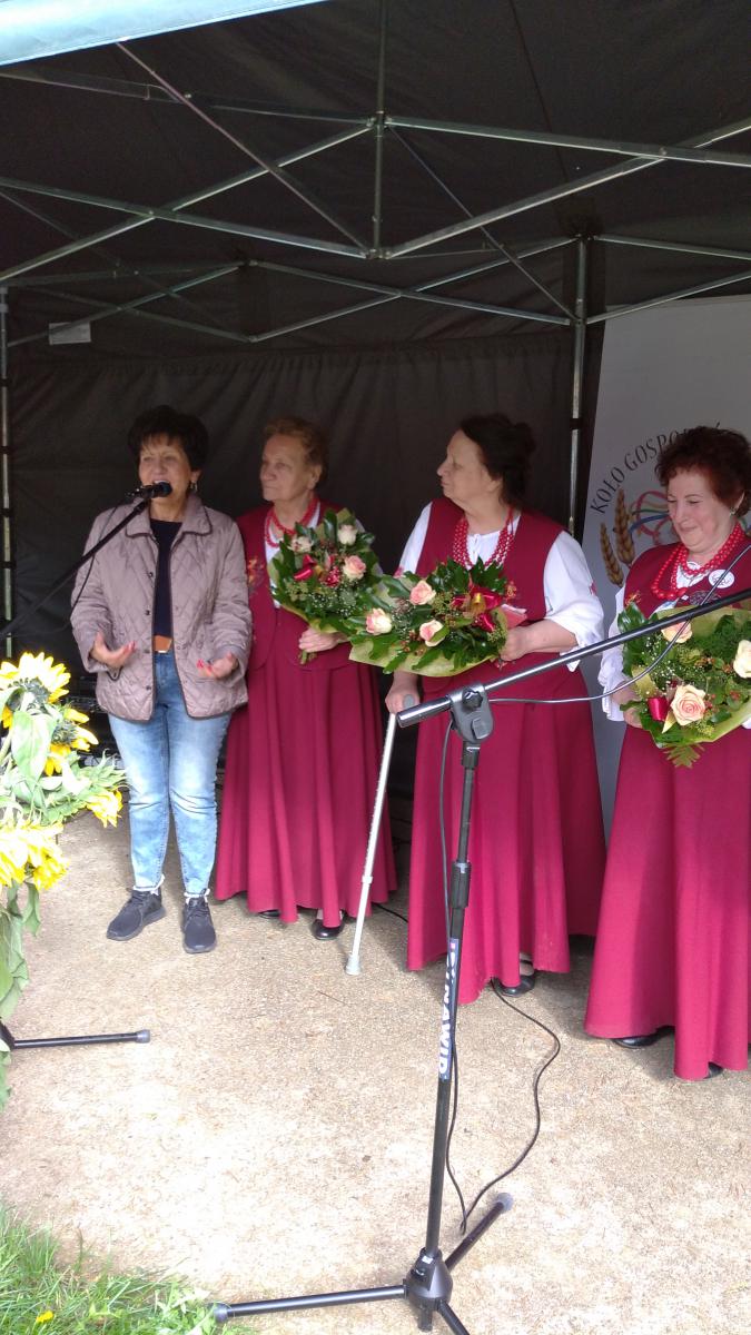 W podziękowaniu za przekazanie tej pięknej tradycji Panie z KGW wręczyły bukiety kwiatów członkiniom zespołu, a Pani Wójt podziękowała „Jagodom” za piękne reprezentowanie Gminy Świeszyno na przestrzeni lat.
