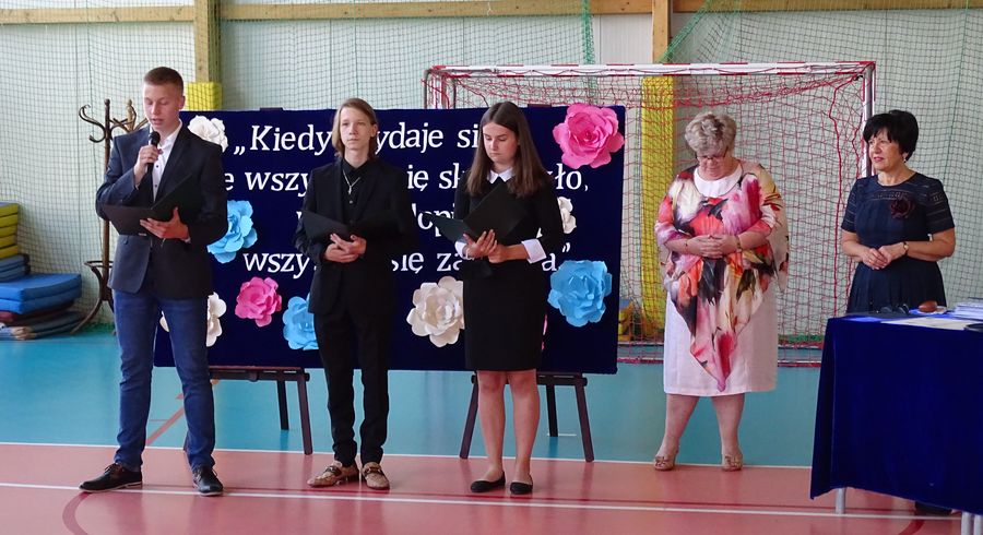 Uczniowie otrzymali nagrody, tytuły wzorowych uczniów oraz pamiątki ukończenia edukacji. Dwoje absolwentów – Katarzyna Brzostko ze Szkoły Podstawowej w Dunowie oraz Hubert Lebioda ze szkoły Podstawowej w Konikowie otrzymali Nagrody Wójta. Uczniowie pożegnali szkoły wzruszającymi przemówieniami, które poruszyły serca wszystkich zebranych.