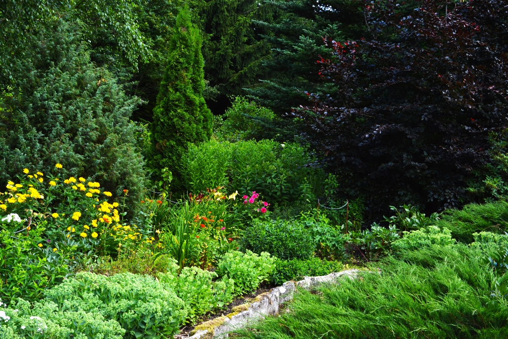 W niższych partiach parku spotkać możemy jaśminowce wonne, głogi jednoszyjkowe, śnieguliczki białe oraz masowo występującą konwalię majowa. W parku rosną drzewa pomnikowe: jesion wyniosły o obwodzie 347cm, dąb szypułkowy o obwodzie 365cm i klon zwyczajny o obwodzie 340cm. Na nieczynnym cmentarzu ewangelickim rośnie kolejny pomnik przyrody – dąb szypułkowy o obwodzie 320cm.