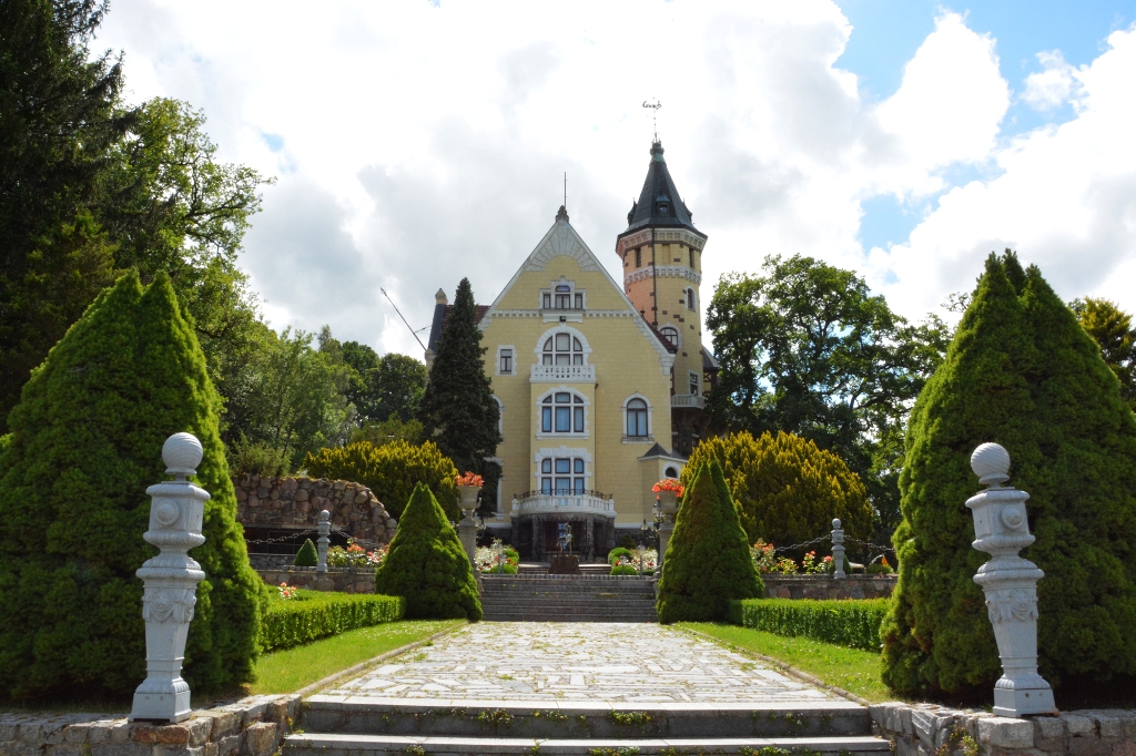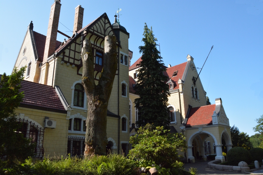 Aktualny właściciel pałacu zadbał również o jego wnętrza. Znajdujące się w nich antyczne meble, liczne rzeźby i historyczne militaria nadają tej budowli ciekawy charakter. Dwukondygnacyjny holl z klatką schodową niewątpliwie charakter ten podkreśla. Przy głównym wejściu do budynku, wzrok odwiedzających przyciąga piękne krzewy bukszpanu i różanecznika. Wokół pałacu rozciąga się rozległy park dworski z jeziorkiem, strzelnicą sportową i kortem tenisowym. Park dostępny jest także dla turystów nie wypoczywających w hotelu. Znajduje się tu m. in. Bogata kolekcja egzotycznych roślin: cyprysików, platanów, żywotników, magnolii, korkowców, morw, białych jaworów i cisów.